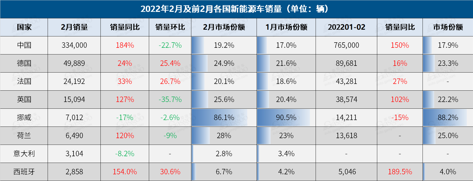 2月份,全球电动车市场表现总体依然出色,同比大都保持高增长,但环比开始有所下降,以中国、英国和荷兰为典型。
