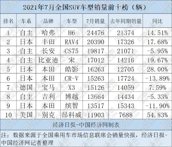 相较之下,合资品牌竞争则是“波涛汹涌”。在中国市场始终“低调”的丰田RAV4终于展现“全球车”风范,7月销量突破2万辆达到20390辆,同比增长17.68%,一举升至榜单亚军位置,并成为合资SUV市场新的“领头羊”。对此,乘联会秘书长崔东树对中国经济网记者说,“丰田在历史上总是经历各种突发情况,因此对突发事件的防范措施做的比较到位,面对‘缺芯’等挑战也更为从容。比如在‘保链、补链、供链’等环节中,丰田做到了芯片等零部件库存的‘前移’,使之可以较为平稳度过;再加之品牌力的背书,共同推动RAV4乃至丰田的突围。”