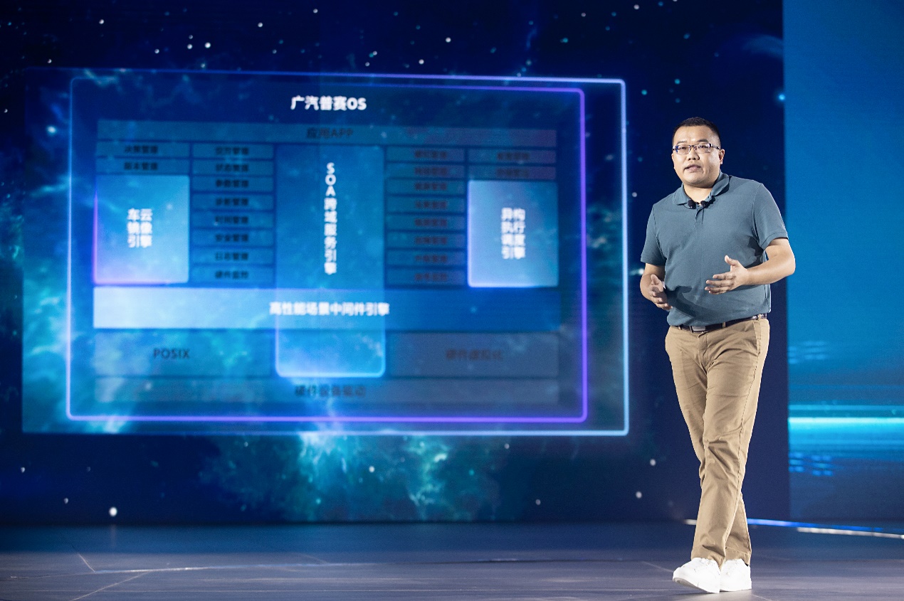 广汽研究院院长助理梁伟强带来了行业首创的面向全车跨域的标准化操作系统——广汽普赛OS,以及全新升级的ADiGO SPACE智能座舱系统和ADiGO PILOT智能驾驶系统