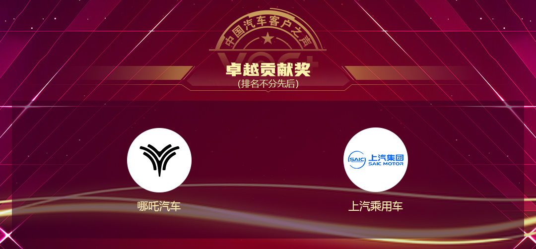 2022年,卓越贡献奖由哪吒汽车和上汽乘用车夺得。