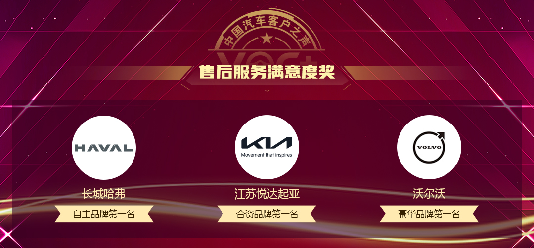 此外,售后服务满意度奖由长城哈弗、江苏悦达起亚、沃尔沃获得。这三个品牌在2022中国乘用车售后服务满意度研究中,分别是自主品牌、合资品牌、豪华品牌的第一名。