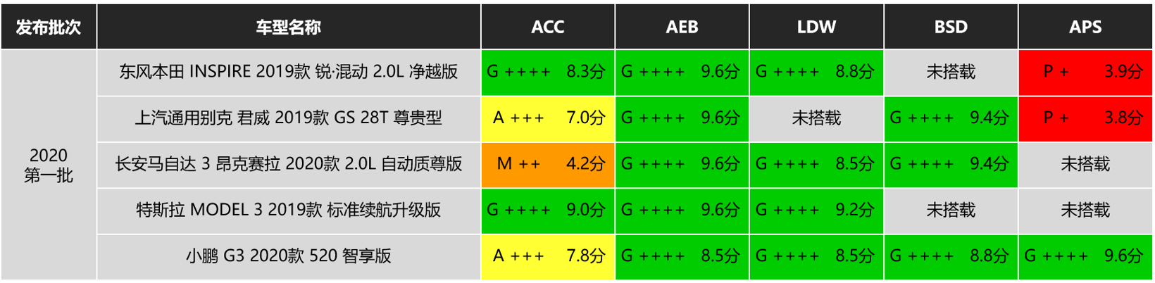 8月12日, 中国汽研i-VISTA管理中心发布了i-VISTA智能汽车指数2020年第一批车型测评结果。本次测评共涉及5款车型,分别为东风本田INSPIRE(2019款 锐·混动 2.0L净越版)、上汽通用别克君威(2019款GS 28T 尊贵型)、长安马自达3 昂克赛拉(2020款 2.0L 自动质尊版)、特斯拉Model 3(2019款 标准续航升级版)、小鹏 G3(2020款 520 智享版),测评结果如下: