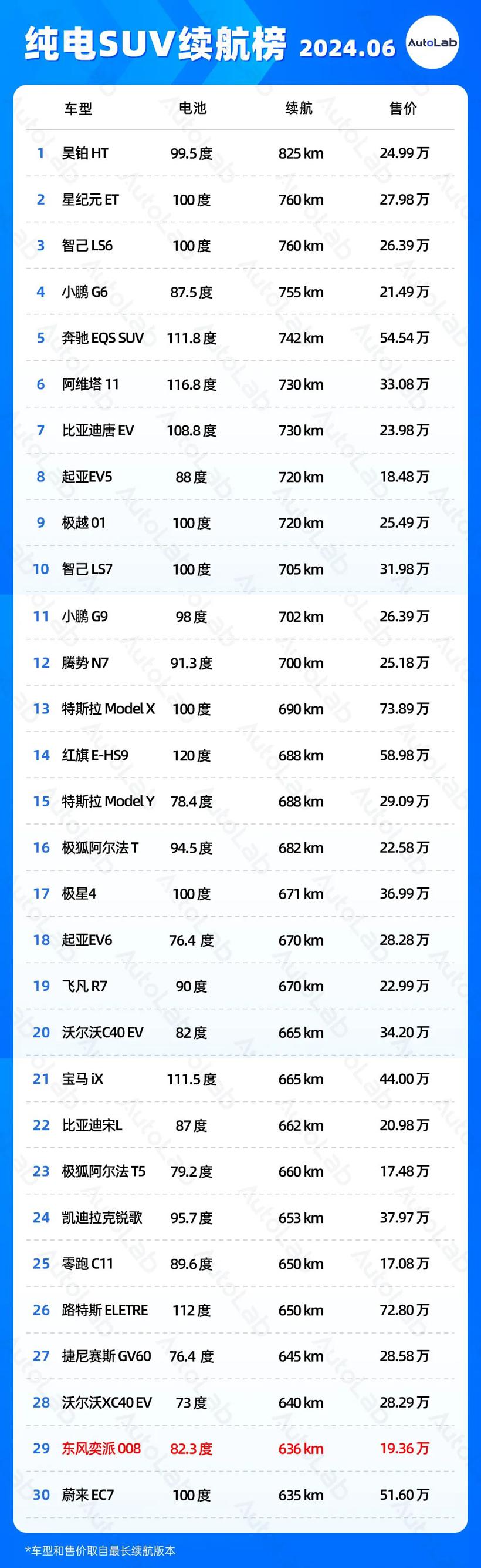 本月纯电SUV榜单中,新增一款奕派008纯电版,售价只要19.36万元,续航可达636km。同时,这款车也是目前最便宜的纯电大六座SUV,而且还是一辆“半价理想”,冰箱彩电大沙发一应俱全。