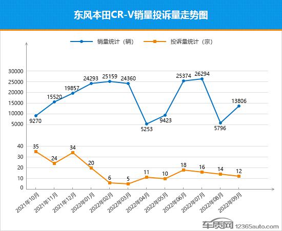 进入2022年,东风本田CR-V市场表现起伏明显,从其近一年来的销量投诉量走势来看,在今年7月销量冲顶后,再次出现下滑,不过好在9月份迅速实现触底反弹,整体形成了W型走势。今年1-9月,东风本田CR-V累计销量159,758辆,较去年同期略有增长,在国内紧凑型SUV销量榜中排名前列。反观东风本田CR-V的月投诉表现,在2022年整体呈现出逐步走低态势,下半年开始月投诉量实现环比“三连降”,9月份的投诉量也降至近四个月来的最低点,口碑表现持续向好。从市场层面来看,9月份CR-V完成了全新换代,不仅外观内饰进行了调整,在轴距加长后还新增了7座版车型,同时内部的配置也有所升级,产品竞争力大幅增强。随着换代车型逐步投放市场,东风本田CR-V的市场表现也有望持续走强,重返巅峰状态。