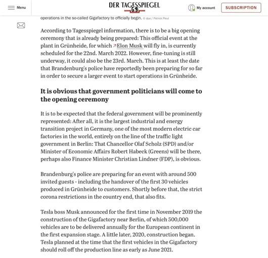 最终,虽然相比媒体爆料的具体时间节点略有偏差,但结果还算令其欣慰。十分有趣的是,当地时间2月23日,德国法兰克福的一家法院证实,将于3月4日举行听证会,审理德国环保组织之前关于柏林工厂供水问题的投诉。