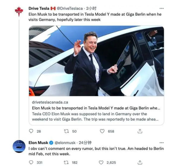 同时,马斯克也在个人社交媒体平台上表示:“将会在2月前往德国,庆祝柏林工厂的顺利开工。”