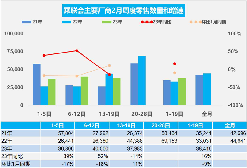 乘联会数据显示,2月1-19日市场零售73.0万辆,同比去年增长16%。乘联会指出,今年2月是春节后的真正市场启动期,也是疫情三年结束后的市场启动期,车市零售增速值得期待。