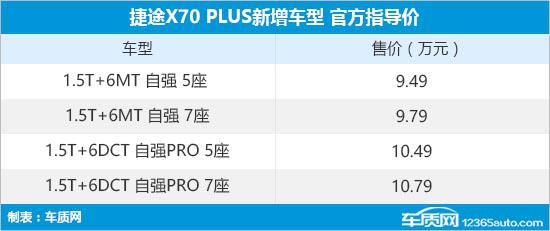 捷途X70 PLUS新增车型上市 售9.49万元起