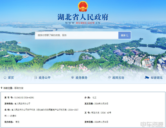 电车资源获悉,11月8日,湖北省印发《湖北省加快发展氢能产业行动方案(2024—2027年)》。明确指出:落地一批绿氢制备项目,形成低成本、多元化的氢能供应体系,建成加氢站100座,氢气总产能达到150万吨/年,燃料电池汽车推广量突破7000辆,打造以电解槽、燃料电池等为核心的全国氢能装备中心,成为全国重要氢能枢纽,在交通、工业等领域形成氢能应用推广示范。