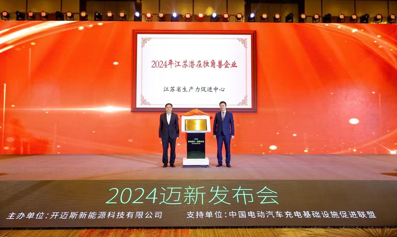 在江苏省生产力促进中心发布的2024年独角兽企业评估中,开迈斯凭借出色的研发实力、快速成长能力和巨大发展潜力,荣获“2024年江苏省潜在独角兽企业”称号。常州市人民政府副秘书长陈峰与开迈斯总经理兼首席执行官周显涛共同为这份荣誉揭牌。这一荣誉不仅是对开迈斯在新能源领域持续创新与实践的肯定,也是对其未来发展潜力的高度认可。