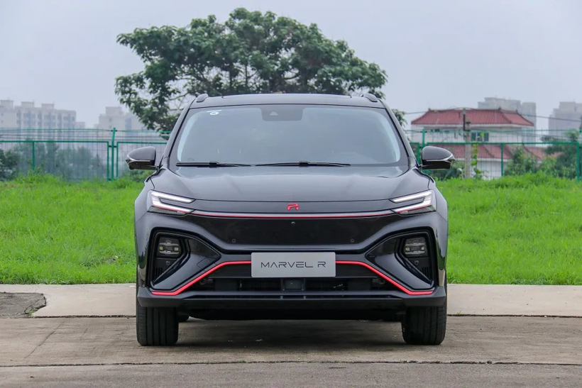 MARVEL R前脸虽然采用电动车常用的封闭式前格栅设计,但是它通过一条名为“环宇之光”的LED灯带横贯前脸,塑造出了独特的线条美感。在前脸的下部,MARVEL R的保险杠采用X型设计,既融入了两侧的分体式LED前大灯组,还将大尺寸梯形进气口布置在中央,进一步提升了整车的科技感和未来感。值得一提的是,MARVEL R还在中配和高配车型上配备了主动闭合式进气格栅,能够带来更加出色的空气动力学效应。