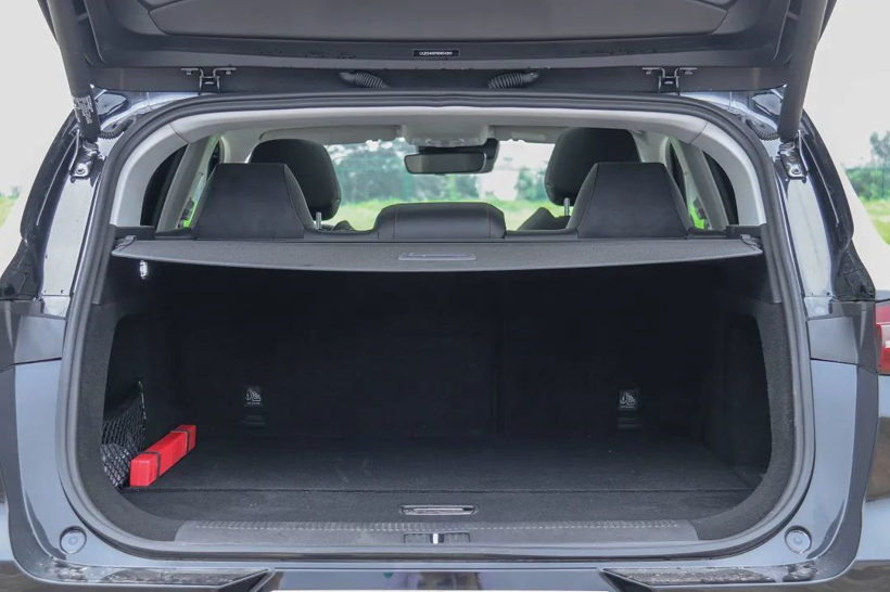 打开MARVEL R的后备厢,首先它配备了电动后备厢,并可通过感应开启,这一点的优势我就不多说了,大家都懂。再来说它的内部空间,MARVEL R后备厢整体造型还是比较规整的,并且纵深也比较可观,满足日常使用是没有任何问题的,如果您有更大更长的货物需要搬运,可以放倒后排座椅以拓展空间。