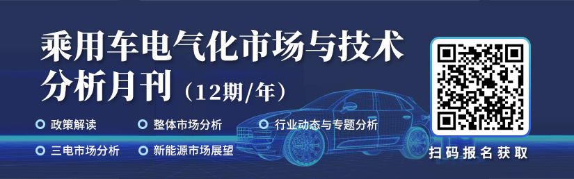 《乘用车电气化市场与技术分析月刊》(12期/年)含:政策解读、整体市场分析、行业动态与专题分析、三电市场分析、新能源市场展望等。获取方式如下: