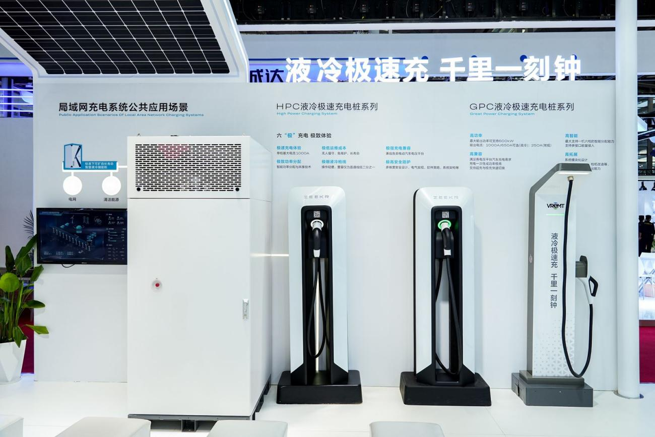 威睿创建于2013年,自成立以来始终立足于新能源汽车三电领域,坚持全域自研自产,不断寻求技术突破与创新,已形成了全面发展的新能源生态链。在此次展会中展出了最新升级的极速液冷充电桩-HPC-V3,其单枪最大电流达1000A,充电效率全球领先,为新能源用户真正带来了“分钟级”补能体验。