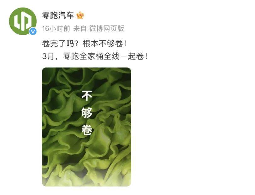 零跑则发文称这还根本不够卷,3月份将发布全家桶全线优惠。