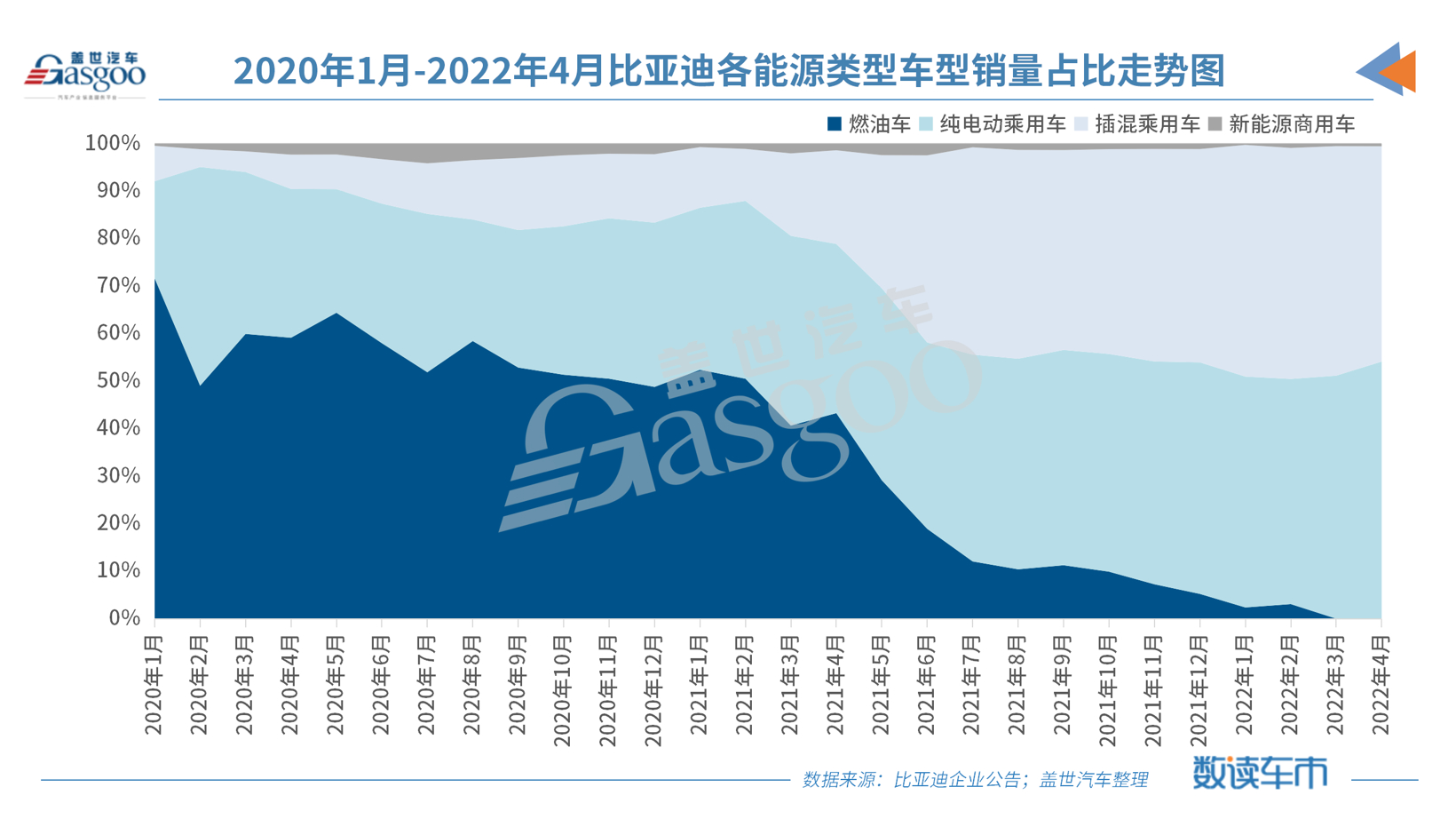 4月,比亚迪纯电动乘用车及插电式混动乘用车分别销售57,403辆和48,072,占集团总销量的54.13%和45.33%。且就资料显示,至此比亚迪已累计销售超190万辆新能源车型。
