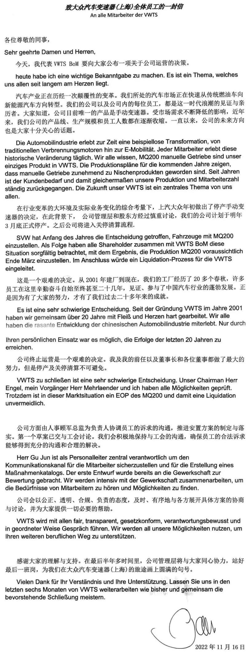 11月17日,大众汽车变速器(上海)有限公司将于2023年3月底正式停产的消息,在各大社交平台上快速发酵。针对该消息,大众汽车中国方面也得到了肯定。