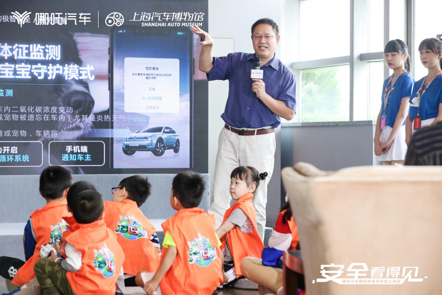 哪吒汽车智能研究院首席工程师申水文博士现身说法讲解哪吒汽车上搭载的智能安全黑科技,申博士用轻松活泼的语言,为在场的小朋友们讲解了哪吒U车内生命体征监测等智能安全科技的原理,背后有哪些“看不见”的神秘科技等等,引起了小朋友的兴趣。还有专业的公益课堂讲师为参与的家庭带来有趣而又有启发的智能安全教育课程。