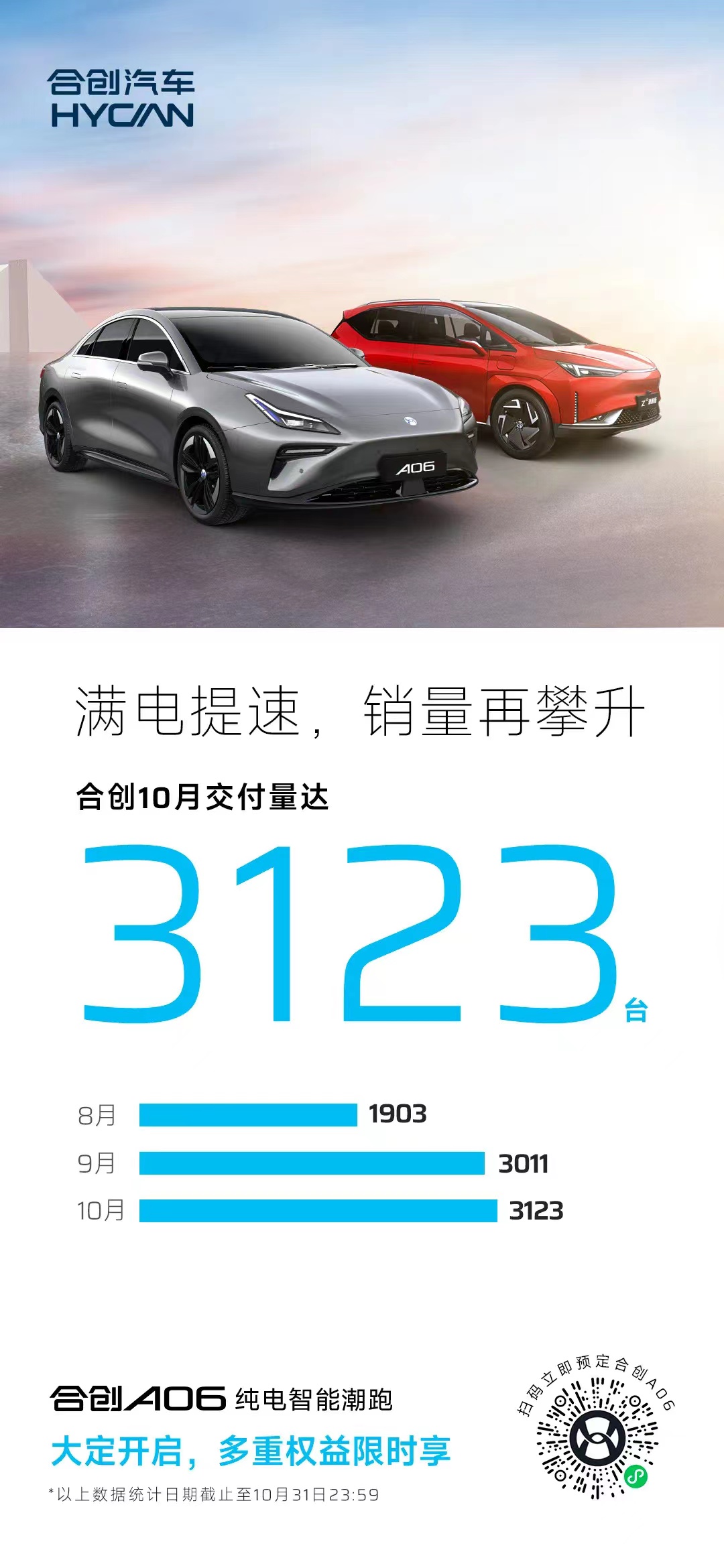 合创汽车10月交付3123台,创近三月新高